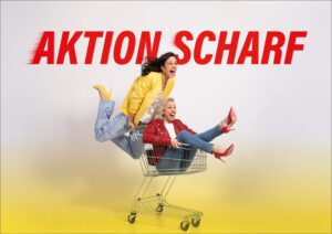 Wieso verwandelt sich der Familieneinkauf regelmäßig in ein Beziehungsdrama? Und wo zum Teufel ist das Stockerl für Linda? Während das Bio-Siegel immer noch nach seiner Herkunft sucht, ist „Aktion Scharf“ ein Kabarettabend für alle, die schon einmal hungrig einkaufen waren, sich über angekettete Einkaufswägen beschweren und endlich wissen wollen, was passiert, wenn beim Werbedreh der Regisseur „und Bitte!“ ruft. Die beiden Schauspielerinnen verpacken ihre Erlebnisse der letzten 5 Jahre als Werbetestimonial einer bekannten Einkaufskette in ihrem ersten gemeinsamen Kabarettprogramm.